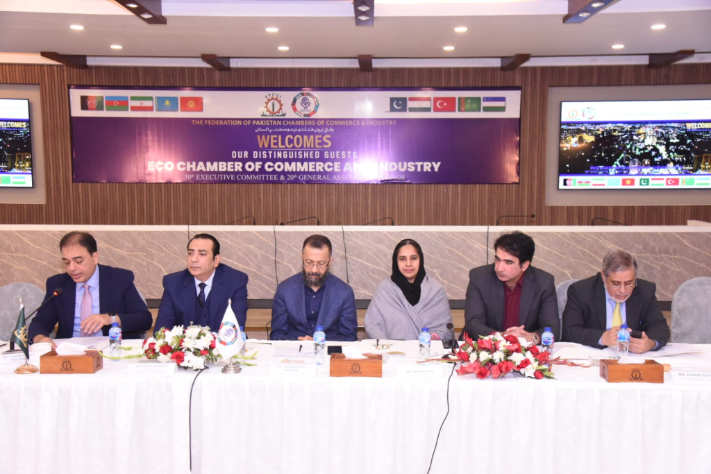 The 20th General Assembly and 30th Executive Committee Meetings of the Economic Cooperation Organization Chamber of Commerce and Industry (ECO-CCI) were held on January 22, 2026, in Karachi. The meetings were hosted and chaired by the Federation of Pakistan Chambers of Commerce and Industry (FPCCI) under the chairmanship of H.E. Mr. Atif Ikram Sheikh, President of ECO-CCI.